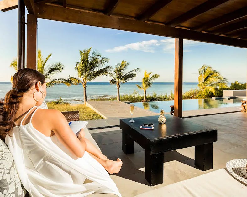For a super luxe beach getaway with space for all your nearest and dearest, Bunker House needs to be your number one. There are seven bedrooms (six with their own ensuite and TV), three kitchens, three lounge areas, a gym, a steam room, a heated rooftop lap pool, an outdoor shower, a movie projector, a fire pit, barbecue, and an indoor fireplace. Phew!