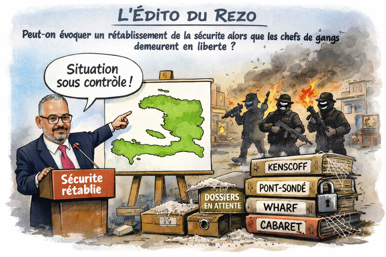 Peut-on soutenir, sur un plan analytique rigoureux, l’hypothèse d’un retour définitif de la sécurité en Haïti alors que les principaux chefs de gangs — Barbecue (BBQ), Izo 5 Segond, Vitelhomme Innocent, Lanmò San Jou, entre autres — demeurent en liberté et continuent d’exercer un contrôle territorial avéré ? Les communiqués laconiques du gouvernement de doublure et d’un directeur général de la police « en mission commandée », évoquant des opérations conjointes avec les Forces armées et des unités spécialisées, ne suffisent pas à étayer une telle affirmation. L’absence de données vérifiables relatives à l’arrestation ou à la neutralisation effective des centres de commandement criminels fragilise la crédibilité institutionnelle du discours sécuritaire.