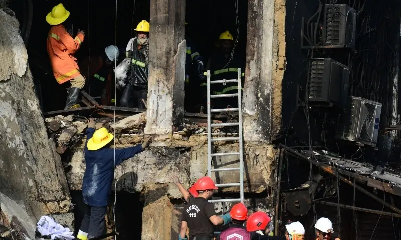 Rescue efforts continued on Tuesday at Karachi’s Gul Plaza after a deadly inferno that claimed at least 23 lives, with teams now clearing the basement of the shopping mall, Mayor Murtaza Wahab said.
