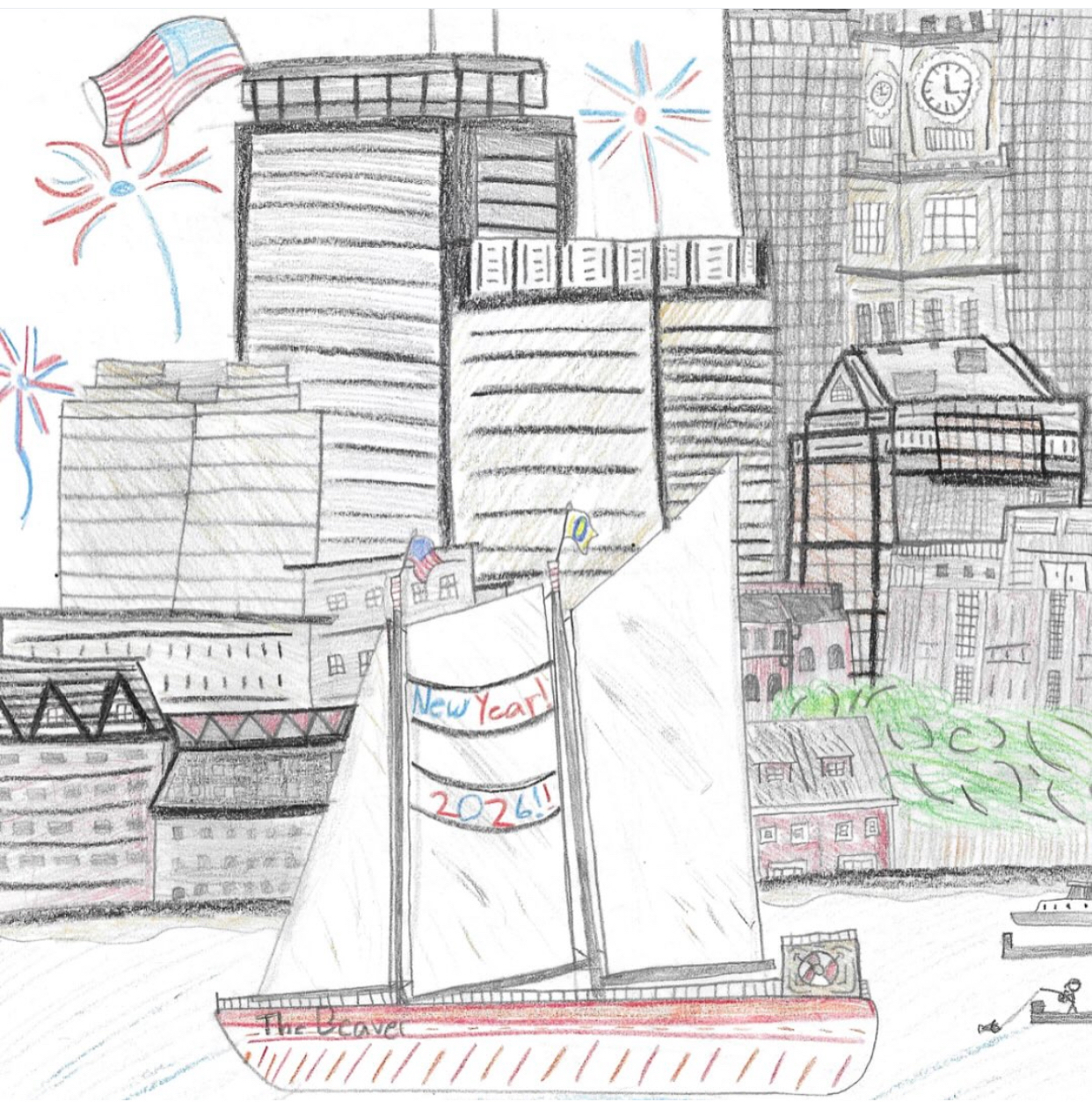 Molly was recently recognized for designing a greeting card that thoughtfully celebrates Boston history. Her artwork features the Beaver, one of the three ships involved in the Boston Tea Party—a nod to the city’s revolutionary roots — and a replica on display at the Boston Tea Party Ship & Museum. The design stood out for its attention to detail and appreciation of local history.