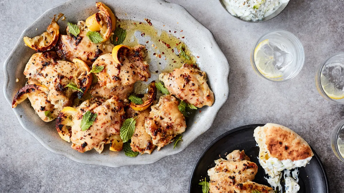 Recipe: Roasted Chicken Thighs With Garlicky Cucumber Yogurt